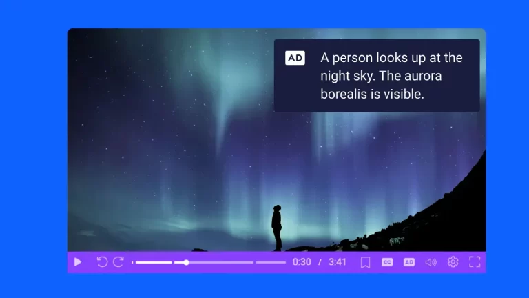 👉 Key takeaway: A compliant audio description is accurate, concise, and focused on essential visuals. It should integrate smoothly into the video and be easily controlled by the viewer.