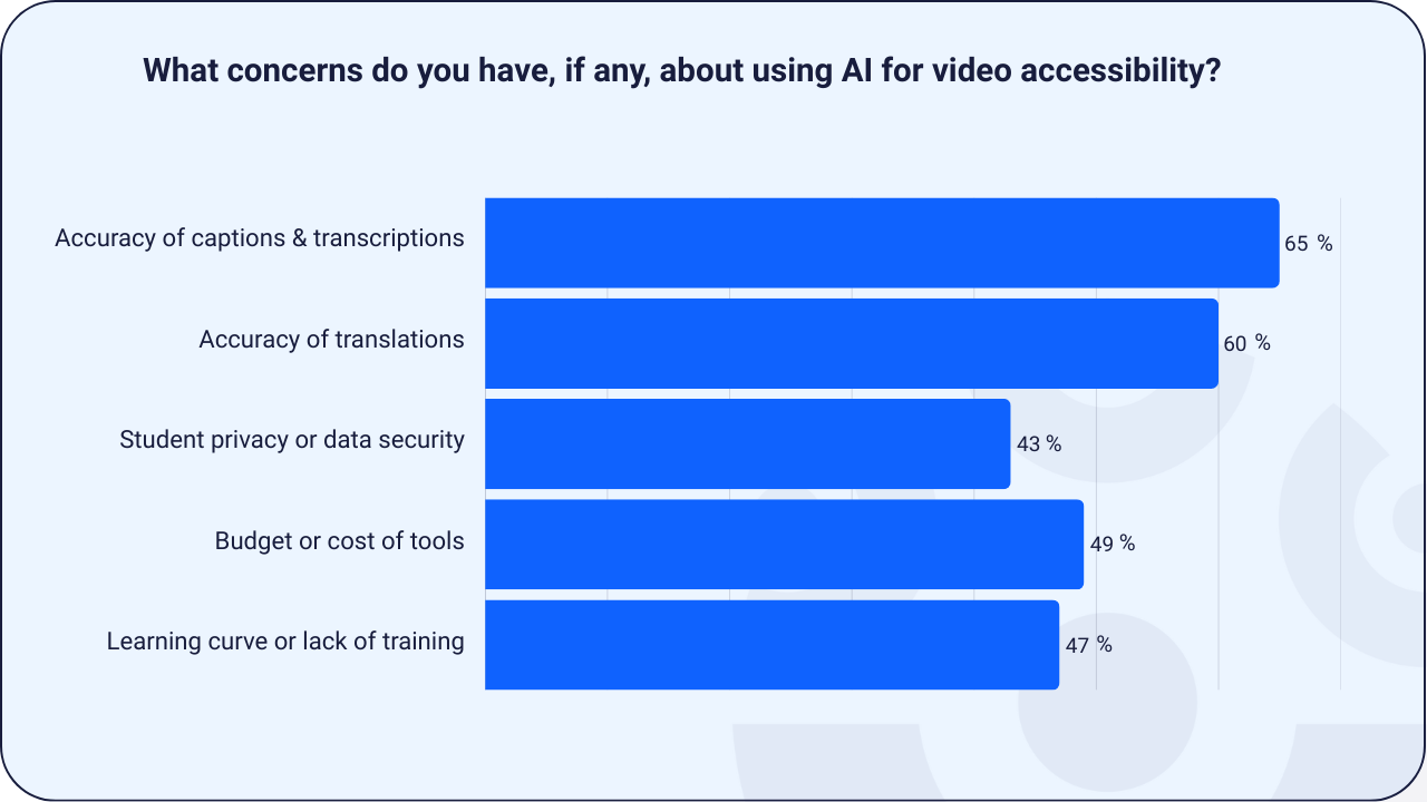 Wondering what would make educators more comfortable using AI tools for video accessibility? Download the full report for free to get the details.